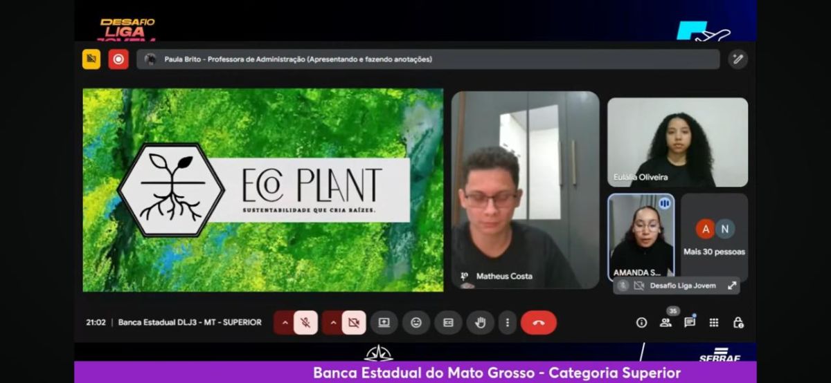 A equipe Eco-Plant: Sustentabilidade que cria raízes, formada por estudantes dos cursos de Administração e Agronomia da Unemat desenvolveu um projeto que alia tecnologia, sustentabilidade e impacto social, propondo soluções inovadoras para o setor agroflorestal. O grupo é composto pelos alunos Eulália Esteffane Silva de Oliveira (Administração), Matheus da Costa António e Amanda Santos Amorim (Agronomia), sob orientação da professora Paula Almeida Brito, docente da disciplina de Consultoria do curso de Administração da Unemat, em Tangará da Serra.
